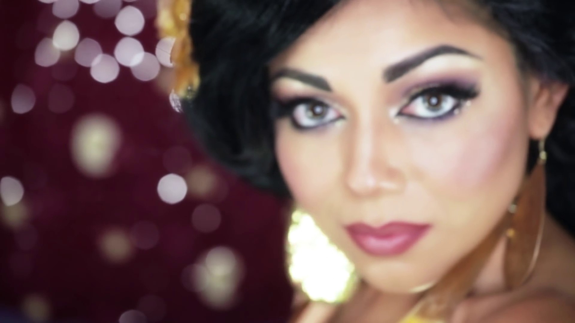 Her special makeup look is exotic and glamorous.
